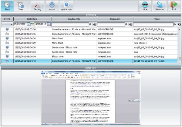 Un altro modo abbastanza diffuso per hackerare un PC è installare su di esso un keylogger, ossia un programma che spia e registra tutto quello che viene digitato sulla tastiera del PC. Uno dei migliori prodotti di questo tipo disponibili gratuitamente in Rete è Spyrix Free Keylogger che permette di catturare di nascosto non solo le parole/frasi digitate sulla tastiera ma anche i movimenti del mouse, i programmi aperti ed altre informazioni utili.