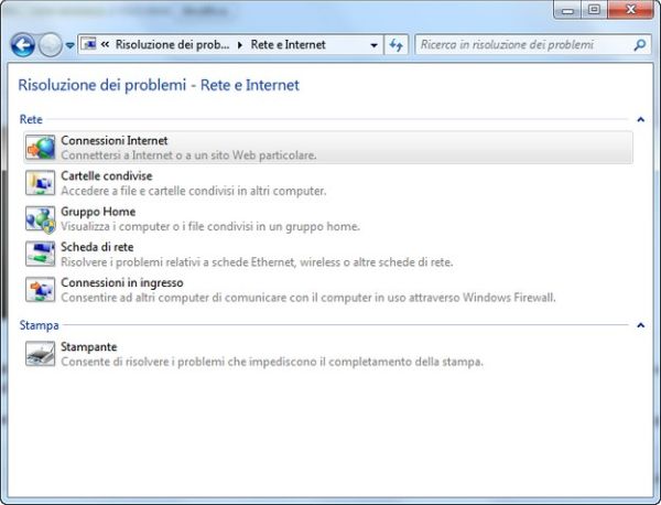 Nella finestra che si apre, clicca su Rete e Internet ed attendi che venga caricata la lista degli strumenti disponibili per la risoluzione dei problemi. Seleziona quindi la voce Connessioni Internet e clicca prima su Avanti e poi su Risoluzione dei problemi di connessione a Internet per avviare la verifica delle problematiche legate alla connessione ad Internet e segui tutti i passaggi che ti vengono proposti nella procedura guidata. Al termine dell'operazione, il problema dell'identificazione della rete dovrebbe essersi risolto.