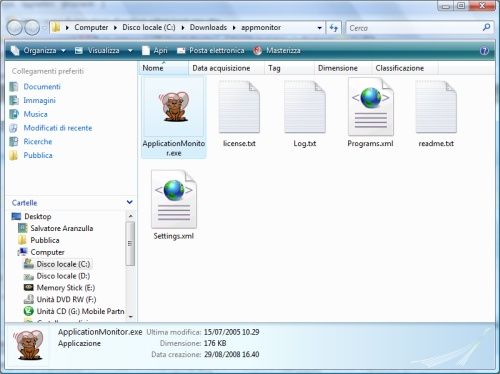 Collegati sul sito Internet di Application Monitor e fai click sulla voce ApplicationMonitor 1.0 nella sezione Scarica. Al termine dello scaricamento, estrai l'archivio scaricato in una cartella qualsiasi del tuo PC e fai doppio click sul programma ApplicationMonitor.exe.