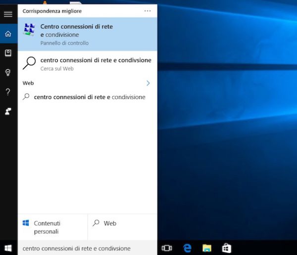 Se ti interessa capire cosa bisogna fare per impostare DNS ed hai un computer Windows la prima operazione che devi compiere è pigiare sul pulsante Start e digitare nel campo di ricerca che ti viene mostrato centro connessine di rete e condivisione. Successivamente pigia sul primo risultato visualizzato.