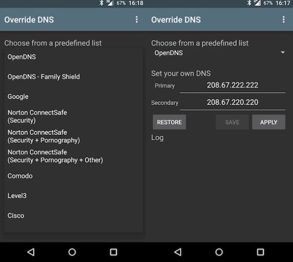 I server DNS di Google sono noti soprattutto per la loro velocità e per il fatto che, essendo internazionali, permettono di accedere anche ai siti che vengono oscurati dai provider italiani. Quelli di OpenDNS sono altresì veloci, consentono anch'essi l'accesso ai siti bloccati in Italia, ma vengono sfruttati in primis per la loro funzione di parental control mediante la quale è possibile inibire la visualizzazione di determinate categorie di siti: social network, siti per soli adulti, siti dedicati ai giochi, servizi di Web Mail e molto altro ancora.