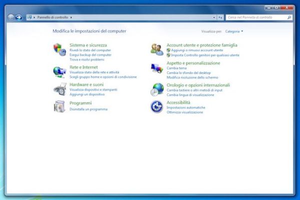 Se è tua intenzione scoprire come fare per installare Internet Explorer su Windows Vista e 7 sostituendo la versione in uso con una più recente la prima cosa che devi fare è cliccare sul pulsante Start. Successivamente pigia sulla voce Pannello di controllo.