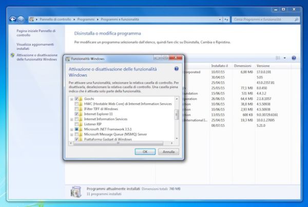 Ad esempio se utilizzi Windows 7 e vuoi installare Internet Explorer dopo la disattivazione devi pigiare sul pulsante Start e fare clic su Pannello di controllo. Nella finestra che successivamente andrà ad aprirsi dovrai fare clic sulla voce Disinstalla un programma collocata in basso a sinistra e dovrai poi selezionare l'opzione Attivazione o disattivazione delle funzionalità Windows collocata nella barra laterale di sinistra. Successivamente aggiungi il segno di spunta accanto alla voce Internet Explorer x dove al posto di x trovi indicata la versione di IE che era in suo sul tuo computer.