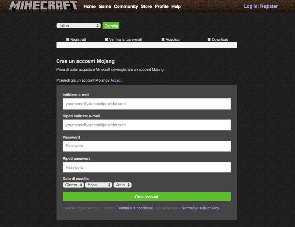 Ora sei pronto per installare Minecraft su PC, ma prima devi creare un account gratuito sul sito del gioco, altrimenti non potrai accedere a quest'ultimo.