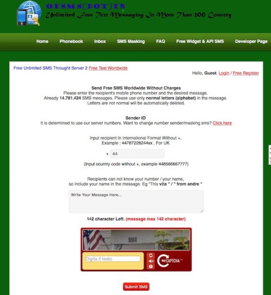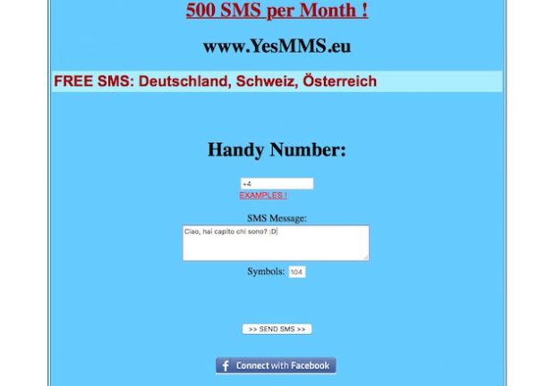 Se invece hai la necessità di inviare SMS in maniera anonima ti suggerisco di sfruttare il servizio online YesSMS. Questo servizio Web ti permette infatti di inviare SMS anonimi senza dover effettuare alcuna registrazione e senza spendere neppure un centesimo. Si tratta poi di uno dei pochi servizi di questo tipo che risultano realmente funzionanti e che supporta la maggior parte degli operatori telefonici, sia nazionali sia internazionali, senza dare alcun tipo di problema. Tieni presente che il servizio permette di spedire messaggi di un massimo di 138 caratteri e non di 160 così come di consueto. Questo limite viene imposto poiché tutti i messaggi che vengono spediti con YesSMS contengono, nella loro parte finale, il link al servizio ed una breve descrizione dello stesso.