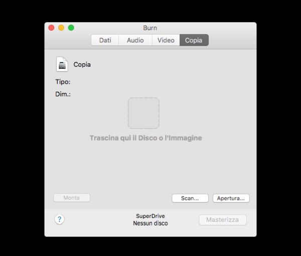 Tanto per cominciare inserisci un dischetto vuoto nel lettore CD/DVD del tuo Mac ed ignora qualsiasi avviso ti viene mostrato a schermo.