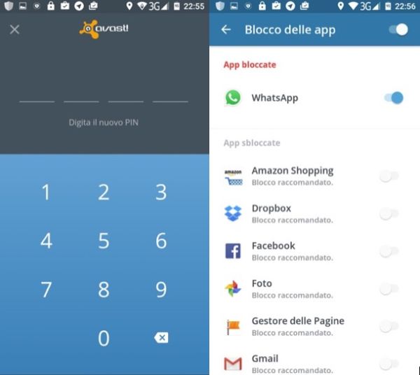 In caso di ripensamenti, per rimuovere la richiesta del PIN in WhatsApp, avvia Avast Mobile Security e recati nella sua sezione Blocco delle app. Dopodiché disattiva la levetta che si trova accanto all'icona di WhatsApp e la richiesta del PIN verrà disabilitata istantaneamente.