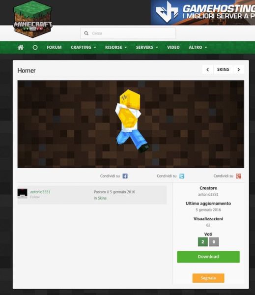 Una volta individuata la skin che più preferisci cliccaci sopra con il tasto sinistro del mouse. Nella pagina che successivamente andrà ad aprirsi fai clic sul pulsante verde Download per scaricare immediatamente sul tuo computer la skin per Minecraft scelta.