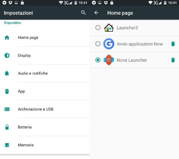 Al termine dell'installazione di entrambe le app, recati nel menu Impostazioni > Home page di Android e imposta Nova Launcher come launcher predefinito del tuo telefono (o del tuo tablet) mettendo il segno di spunta accanto al suo nome.