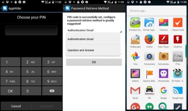 Una volta impostato il tuo PIN (e confermato il tuo indirizzo email ai fini di recupero del codice), torna sulla home screen di Android, apri la lista delle app installate sul dispositivo e dovresti notare che quelle che hai segnato in AppHider sono “scomparse”.