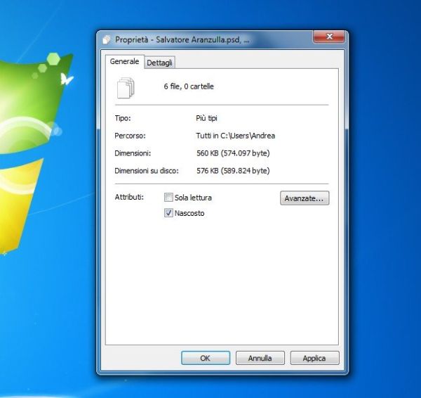 Nella finestra che si apre, recati nella scheda Generale (anche se dovresti esserci già), metti il segno di spinta accanto alla voce Nascosto e clicca prima su Applica e poi su OK. Bene, da questo momento in poi, i file e le cartelle che hai selezionato sono nascosti (invisibili) e puoi accedervi solo digitandone correttamente l'indirizzo nell'Esplora Risorse di Windows.