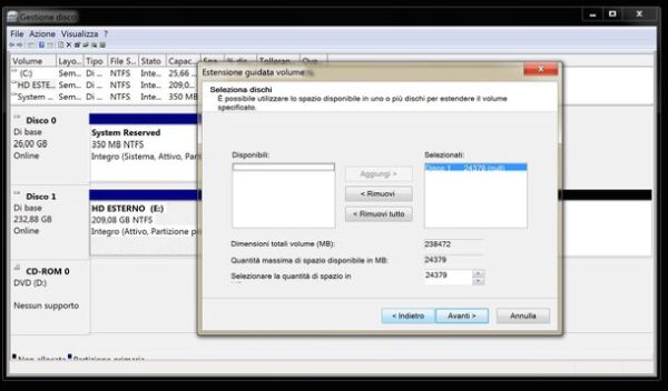 Nella finestra che si apre, clicca su Avanti, specifica la quantità di spazio (in MB) da aggiungere alla partizione e porta a termine la procedura pigiando su Avanti e Fine. L'operazione non comporta la perdita di alcun dato.