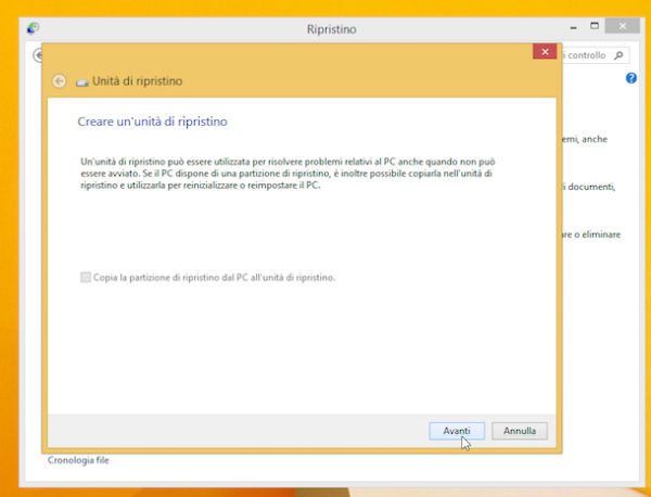 Se non lo hai ancora fatto provvedi inoltre a masterizzare i dischi di ripristino del computer in modo tale che in caso di ripensamenti o problemi riguardo la procedura mediante cui installare Windows 7 su Windows 8 tu possa riportare il computer al suo stato originario. Per scoprire come fare puoi consultare la mia guida su come formattare il PC Windows 8.