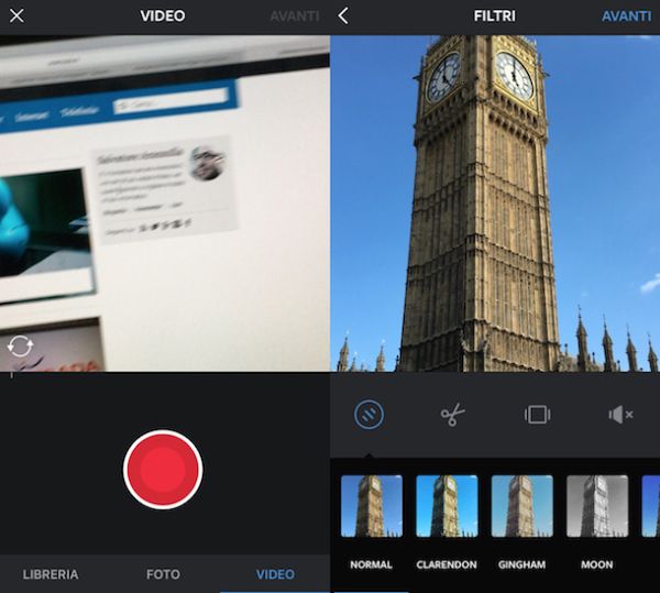 Quando sei soddisfatto del risultato ottenuto puoi procedere andando a postare su Instagram il tuo video pigiando sulla voce Avanti che si trova in alto a destra.