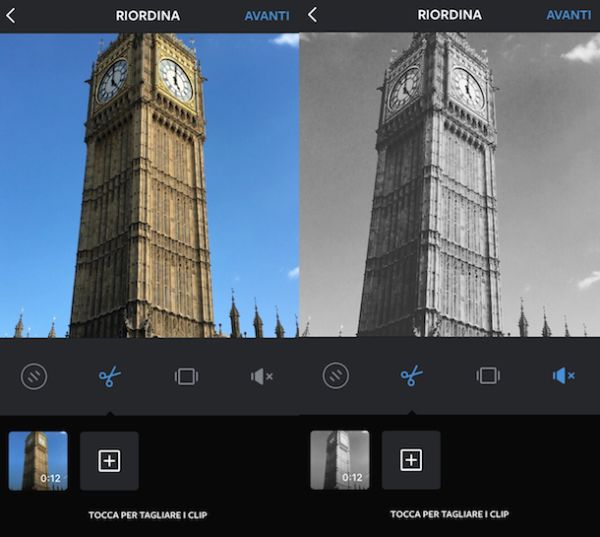 Prima di postare su Instagram il tuo video puoi inoltre provvedere a tagliare il filmato facendo tap sul pulsante a forma di forbici e definendone l'inizio e la fine, puoi selezionare un fotogramma di copertina diverso da quello di default facendo tap sul pulsante a forma di quadrato e puoi scegliere se abilitare oppure no l'audio nel filmato pigiando sul pulsante a forma di altoparlante.