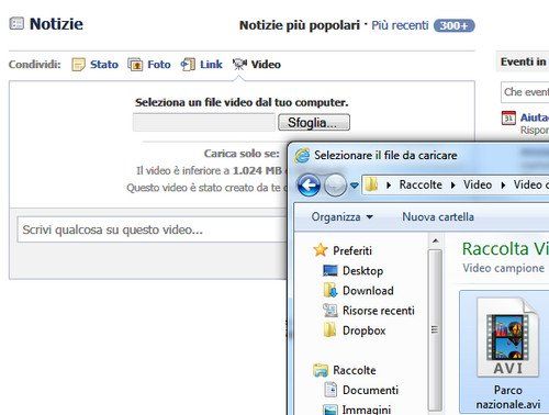 Se hai scelto la prima opzione, non devi far altro che seguire la procedura guidata che ti viene proposta, registrare il tuo video e pubblicarlo sulla tua bacheca di Facebook. Se hai scelto di caricare un video su Facebook partendo da un file presente sull'hard disk del tuo PC, invece, clicca sul pulsante Sfoglia e seleziona il file da caricare. Per non avere problemi di conversione (es. sfasamenti dell'audio), utilizza video in formato AVI o MP4.