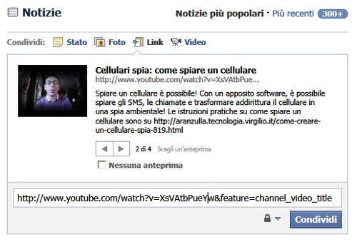 Entro qualche istante comparirà un riquadro con l'anteprima del video che hai deciso di postare. Cancella quindi l'indirizzo che hai incollato nel campo dell'aggiornamento dello stato, sostituiscilo con un commento che vuoi assegnare al video (se vuoi) e clicca sul pulsante Condividi per pubblicare il filmato sulla tua bacheca.