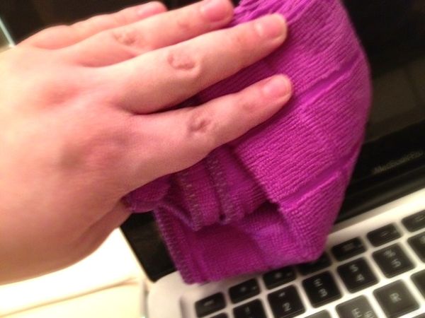 Una volta fatto ciò, passa la gomma sotto l'acqua, strizzala in modo da eliminare il liquido in eccesso ed utilizzala per pulire la superficie del tuo laptop: tastiera, trackpad, ecc. Al termine dell'operazione, asciuga il “corpo” del computer usando della carta o - meglio ancora - un panno in microfibra e il gioco è fatto.