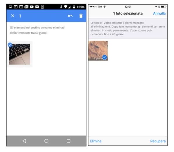 Per impostazione predefinita, Android e iOS spostano le foto cancellate in una cartella temporanea: una sorta di cestino nelle quali le immagini restano per alcuni giorni prima di essere cancellate definitivamente. Se prima della cancellazione definitiva delle foto - che di solito avviene entro 60 giorni - accedi al cestino, hai la possibilità di recuperare le immagini senza ricorrere a software particolari.