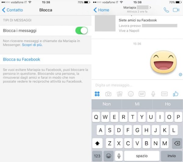 In seguito, vai su Blocca, porta su ON la levetta che trovi accanto alla voce Blocca i messaggi e l'utente selezionato verrà bloccato nella chat di Facebook (quindi su Messenger). In caso di ripensamenti, per attivare nuovamente le comunicazioni in Messenger con l'utente bloccato, devi tornare nello stesso menu e portare su OFF la levetta collocata accanto alla dicitura Attiva i messaggi. Semplice, vero?
