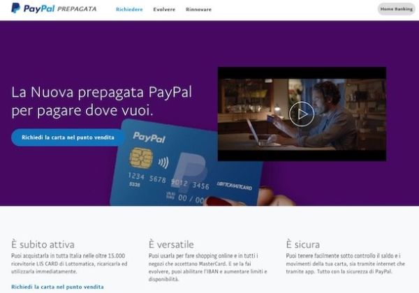 Dopo essere diventata un punto di riferimento nel settore dei pagamenti online, PayPal sta tentando di conquistare anche il mercato delle prepagate con una soluzione a suo marchio, una prepagata MasterCard che ha tutti i vantaggi delle carte di questo tipo ed in più offre l'integrazione con i servizi online dell'azienda americana. Questo significa che può essere associata facilmente al proprio conto PayPal online e ricaricata direttamente tramite quest'ultimo. Bello, vero?