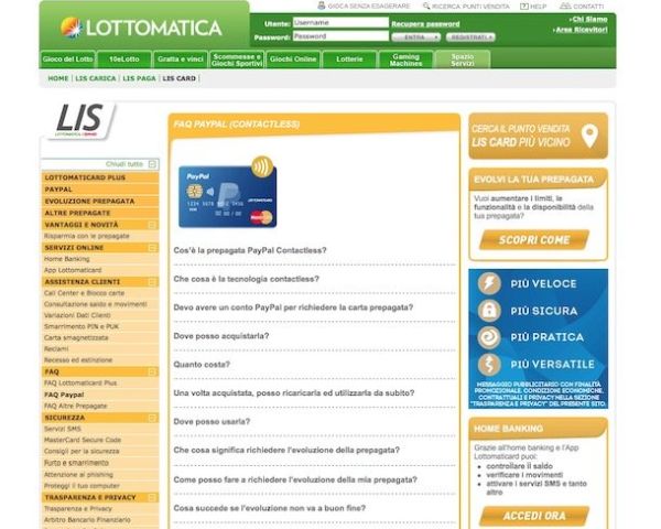 Pur avendo seguito pedissequamente le mie indicazioni stai riscontrando delle difficoltà nel riuscire a richiedere PayPal? Mi dispiace. Per cercare di far fronte alla cosa, ti suggerisco di dare subito uno sguardo all'apposita pagina delle FAQ annessa al sito Internet di Lottomatica a cui puoi accedere facendo clic qui. Una volta aperta la pagina Web, prova a vedere se le difficoltà da te riscontrare sono menzionate tra i vari quesiti proposti e se è disponibile una soluzione.