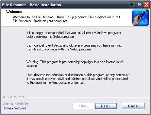 A scaricamento completato apri, facendo doppio click su di esso, il file appena scaricato (FileRenamerBasic.exe) e, nella finestra che si apre, clicca sul pulsante Next.