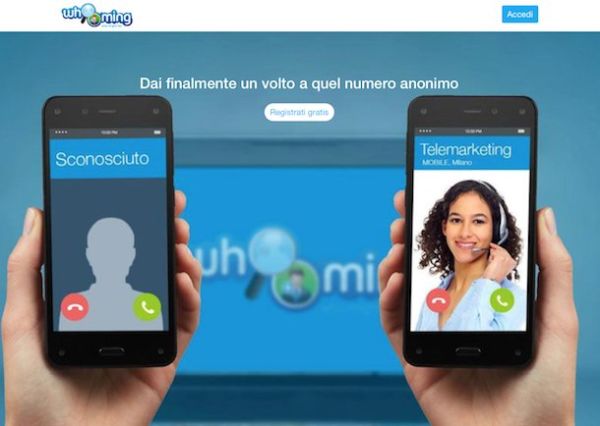 Il primo sistema a cui ti suggerisco di appellarti per cercare di rintracciare un numero privato è Whooming. Non ne hai mai sentito parlare? Tranquillo, rimediamo subito. Si tratta di un servizio disponibile anche sotto forma di app per Android e per iOS che permette di scoprire i numeri privati e anonimi usando la tecnica della deviazione di chiamata. Il servizio è gratuito e funziona senza problemi con tutti i gestori telefonici. Provalo e sono sicuro che non te ne pentirai.