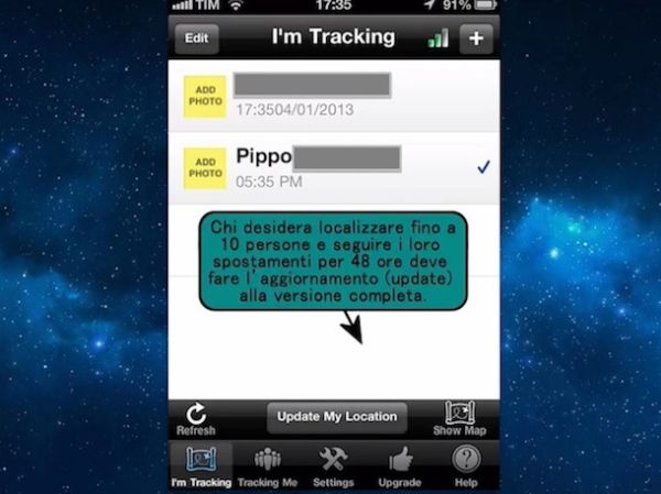 Utilizzarla è abbastanza semplice. Basta creare un account e aggiungere alla app il codice identificativo della persona da rintracciare con il “melafonino”. Trovi tutte le istruzioni più dettagliate nella mia guida su come pedinare un cellulare.