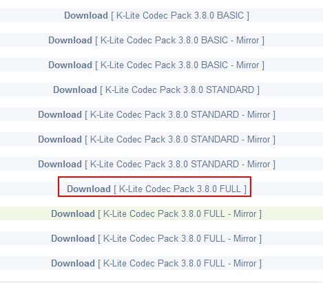 Rimboccati le maniche e punta il tuo browser su questo sito Internet. Fai click sulla voce Download K-Lite Codec Pack e, nella pagina che si apre, su Download [ K-Lite Codec Pack 3.8.0 FULL ].