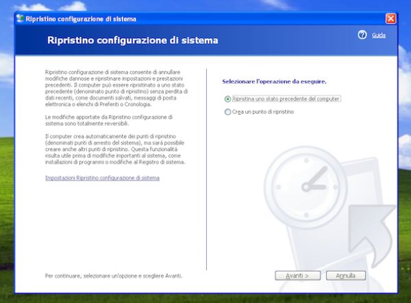 Se invece ti interessa capire come far per ripristinare XP adoperando un punto di ripristino ti basta sfruttare l'apposita funzione integrata nel sistema operativo.