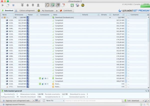 JDownloader è un download manager gratuito ed open source capace di scaricare file da tutti i principali servizi di file hosting (MEGA, NowDownload ecc.) e di “catturare” i file multimediali presenti su qualsiasi sito Internet, compreso Facebook. È compatibile con Windows, Linux e Mac OS X.