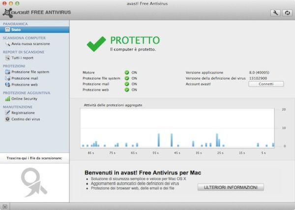 Avast Free è la versione gratuita di uno degli antivirus più popolari disponibili attualmente sul mercato. Utilizzandolo, è possibile proteggere il proprio computer da tutte le principali minacce informatiche avendo un monitoraggio completo dei file aperti, della navigazione Web e della posta elettronica. È estremamente leggero e facile da usare, anche perché la sua interfaccia utente è tradotta completamente in italiano.