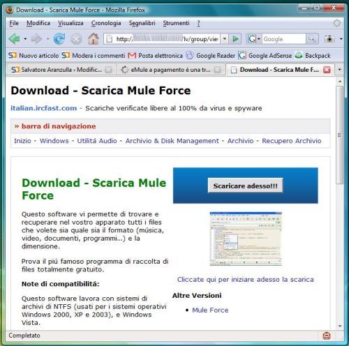 Insomma ti assicurano che il programma che stai per scaricare (a pagamento) è sicuro da software malevoli, di cui loro ti riempiranno il computer. Un bel servizio (a pagamento)! Altra domanda. Lo scaricamento di eMule da dove viene?