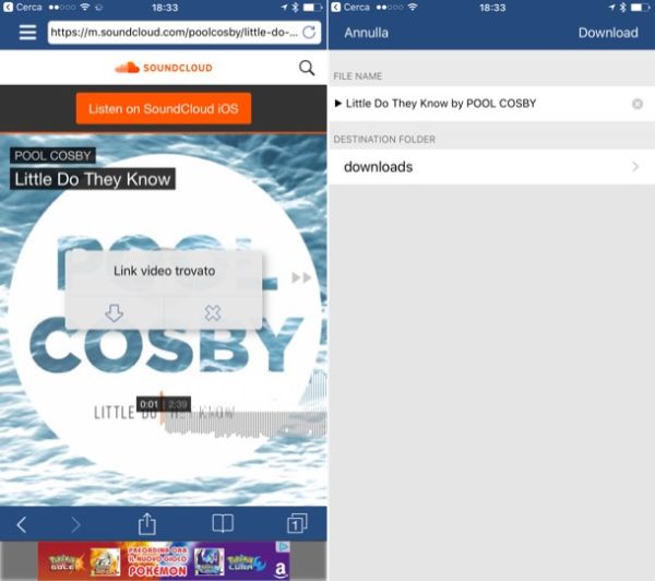 Se utilizzi un iPhone o un iPad ti consiglio invece di utilizzare TDownloader: un browser gratuito che ha la capacità di catturare tutti i contenuti multimediali riprodotti in streaming sulle pagine Web (come sono, per l'appunto, le canzoni su SoundCloud).
