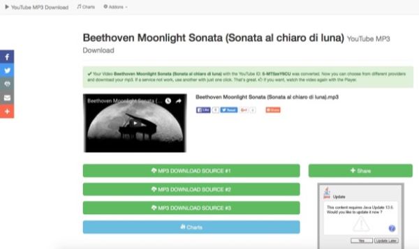 Un altro sito che ti consiglio di prendere in considerazione è YouTube to MP3, il quale fa da "ponte" verso vari servizi che permettono si scaricare musica da YouTube. Si presenta con una grafica minimalista e include una pratica funzione di ricerca che permette di trovare velocemente i video su YouTube. Offre anche un'interessante classifica che consente di scoprire tutti i brani più popolari del momento.