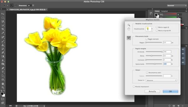Infine, clicca sul pulsante Migliora bordo che si trova in alto a destra ed utilizza le barre di regolazione presenti nella finestra che si apre per perfezionare ulteriormente la selezione. Ad operazione ultimata, clicca su OK e il gioco è fatto. Sei pronto a copiare, tagliare e incollare l'elemento selezionato nel tuo prossimo fotomontaggio. Un signor fotomontaggio, mi sento di aggiungere.
