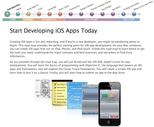 Per sviluppare applicazioni per iOS occorre usare il linguaggio Objective-C, che risulta abbastanza intuitivo per tutti coloro che hanno esperienze di programmazione in Java e C++. Se tu non sei fra questi, puoi cercare su Google delle guide ad Objective-C (ce ne sono a bizzeffe) oppure far riferimento al sito ufficiale di Apple in cui c'è una bella introduzione alla piattaforma (in inglese).