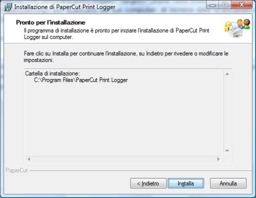 Collegati sul sito Internet di PaperCut Print Logger e fai click sulla voce Download Now per scaricarlo sul tuo computer. Al termine dello scaricamento, fai doppio click sul file di installazione scaricato e, nella finestra che si apre, sul pulsante OK.