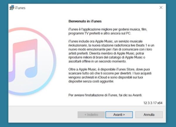 Se tu hai un PC Windows e non hai ancora provveduto a installare iTunes, rimedia subito collegandoti al sito Internet di Apple e cliccando sul pulsante Download. A download completato, avvia il file iTunes6464Setup.exe che hai appena scaricato sul tuo computer e clicca prima su Avanti e poi su Installa, Sì, Sì e Fine per concludere il setup.
