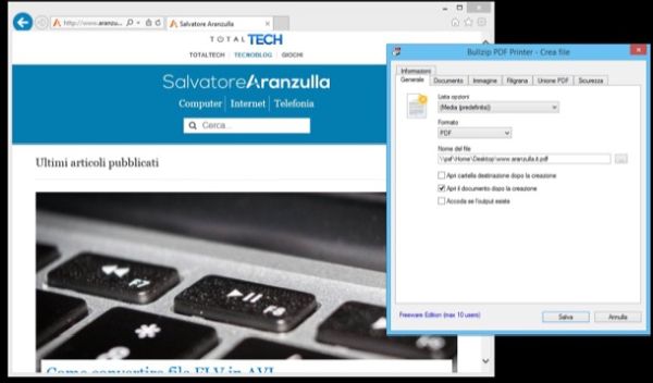 Nel caso in cui avessi bisogno di elaborare documenti particolarmente "pesanti", ti consiglio di optare per soluzioni offline come Bullzip PDF Printer, una stampante virtuale per Windows che permette di trasformare qualsiasi tipo di contenuto stampabile in PDF. Parliamo dunque di file di Office, pagine Web, foto, presentazioni e molto altro ancora.