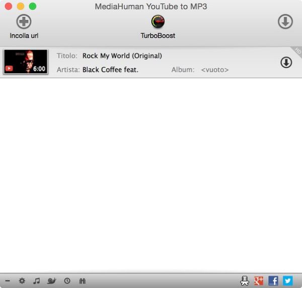 A questo punto, torna sulla finestra principale dell'applicazione, clicca sulla freccia in alto a destra e il tuo video (o i tuoi video, ne puoi aggiungere quanti ne vuoi alla coda di download) verranno prima scaricati e poi convertiti in file audio. Li troverai nella cartella \Musica\Downloded by MediaHuman\