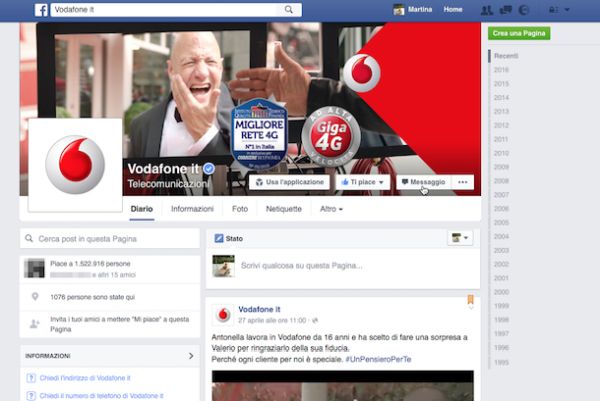 Anziché effettuare una telefonata preferisci contattare l'assistenza del gestore per trovare codice PUK Vodafone tramite Facebook o Twitter? Si? Beh, sappi che è possibile. Puoi infatti metterti in contatto con l'assistenza Vodafone mediante i canali social dell'azienda e chiedere un ricontatto. Su Facebook ti basta inviare un messaggio privato alla pagina ufficiale Vodafone IT specificando dettagliatamente la tua esigenza di trovare codice PUK Vodafone mentre su Twitter puoi citare l'account @VodafoneIT all'inizio di un messaggio e usare l'hashtag #tw190 per richiamare l'attenzione dell'assistenza del gestore e aspettare che l'operatore ti contatti per comunicare in privato, tramite messaggio diretto. Se necessiti di maggiori dettagli puoi consultare la mia guida su come chattare con Vodafone.