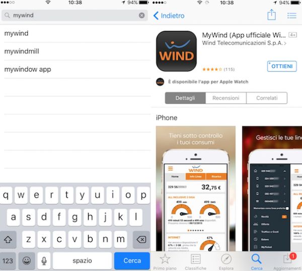 Per trovare PUK Wind mediante app MyWind la prima cosa che devi fare è quella di effettuare il download dell'applicazione sul tuo dispositivo. Se hai già provveduto a scaricare l'app sul tuo smartphone o tablet puoi passare direttamente alla lettura del paragrafo successivo, in caso contrario procedi nel seguente modo. Per scaricare l'app MyWind pigia sull'icona dell'app store disponibile sul tuo smartphone o sul tuo tablet, digita mywind nel campo di ricerca visualizzato e pigia Invio sulla tastiera visibile a schermo. In seguito, seleziona l'app con l'icona raffigurante il logo dell'operatore dall'elenco che ti viene mostrato e poi pigia sul pulsante per eseguirne il download e l'installazione sul tuo dispositivo. L'applicazione MyWind è disponibile per dispositivi iOS, per dispositivi Android, per dispositivi Windows Phone e BlackBerry.