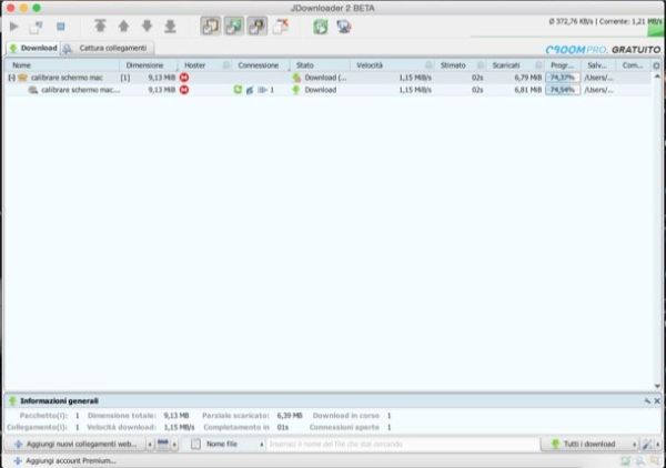 Bene, a questo punto direi che è arrivato il momento di scoprire in termini pratici come usare JDownloader Mac. Vuoi sapere una chicca? Quando in esecuzione, il software cattura automaticamente tutti i link visitati nel browser o copiati nella clipboard di OS X. Questo significa che se fai click sul link per scaricare un file o copi l'indirizzo di un file presente su MEGA, FireDrive o servizi simili, JDownloader lo importa automaticamente nella sua scheda Cattura collegamenti e ti permette di aggiungerli alla coda di download con un semplice click.