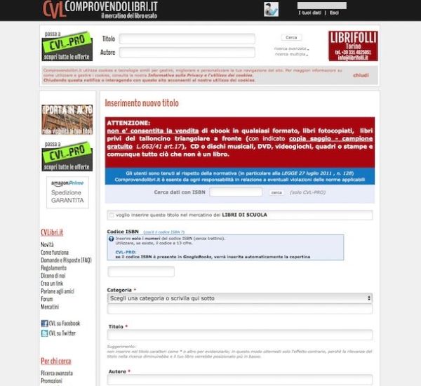 A questo punto direi che finalmente ci siamo, puoi iniziare a vendere libri usati online! Per fare ciò, clicca sulla voce I tuoi dati presente nella parte in alto a destra del sito Internet, scorri verso il basso la pagina che successivamente ti vien mostrata e fai clic sulla voce Inserisci il titolo che vuoi vendere annesso alla sezione I tuoi libri.
