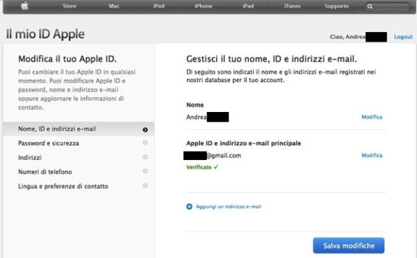 Ti ricordo che dal sito di Apple puoi modificare anche le altre informazioni associate al tuo ID Apple, come l'indirizzo di casa, la password dell'account e il numero di telefono per essere contattato. Basta usare il menu collocato sulla sinistra per navigare nelle varie sezioni del sito e compilare i moduli sulla destra.