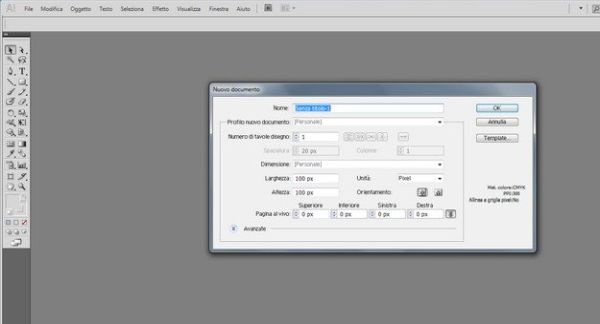 Il primo passo che devi compiere per imparare come vettorializzare un logo è avviare Adobe Illustrator attraverso la sua icona presente sul desktop o nel menu Start di Windows e creare un nuovo foglio di lavoro nel programma, selezionando la voce Nuovo dal menu File. Nella finestra che si apre, seleziona la voce Pixel dal menu a tendina Unità, imposta come Larghezza ed Altezza del foglio di lavoro le dimensioni del logo che desideri trasformare in grafica vettoriale e clicca sul pulsante OK per completare l'operazione.