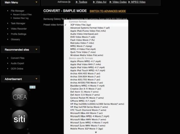 Se hai una connessione abbastanza veloce e non ti va di installare nuovi programmi sul tuo PC puoi convertire i video anche online, usando VideoToolbox. Si tratta di un servizio Web totalmente gratuito in grado di convertire tra loro tutti i principali formati di file video garantendo un limite di upload di 600MB.