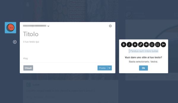 Se non hai grossissime aspirazioni come blogger e ti accontenti di un piccolo spazio online, tanto semplice quanto al contempo essenziale, all'interno del quale condividere i tuoi pensieri con i lettori, puoi rivolgerti a Tumblr. Non ne hai mai sentito parlare? Ti schiarisco subito le idee: si tratta di una piattaforma per la creazione di tumblelog, ossia dei blog in cui vengono pubblicati articoli generalmente più concisi di quelli presenti nei blog ma più ricchi di elementi multimediali, quali foto, video ecc.